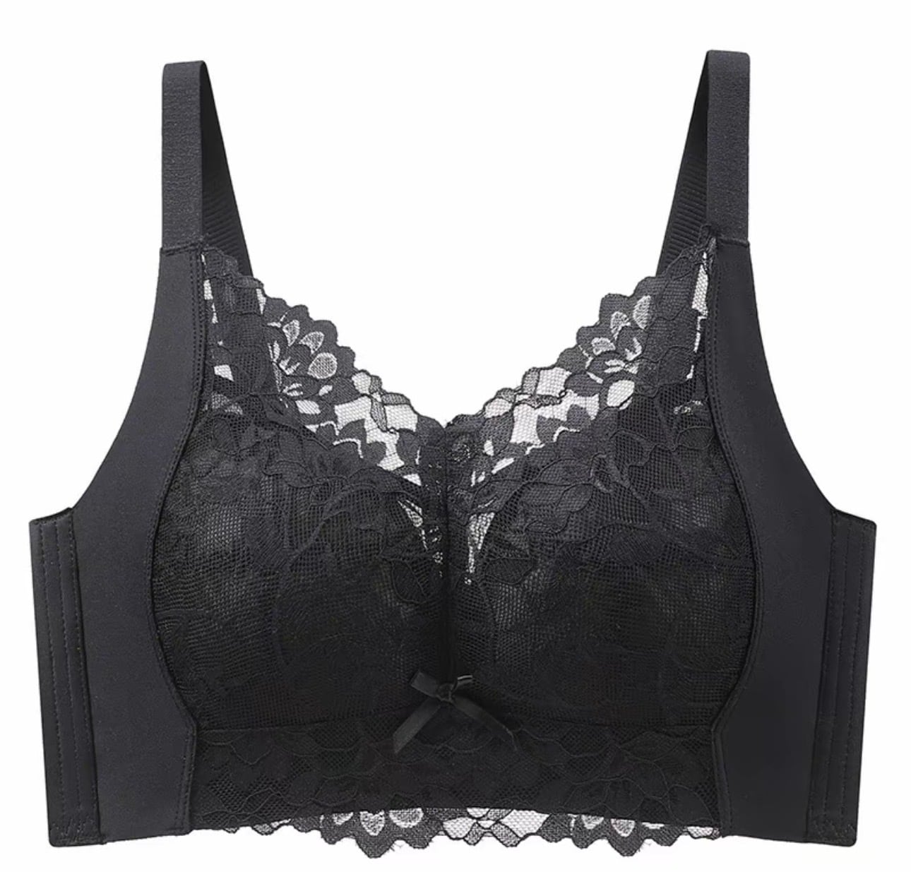 優雅なデザインのブラック レースノンワイヤー脇高ブラジャーが、限定1枚で特別価格で登場!快適かつ自信を持てるスタイルを手に入れるチャンスをお見逃しなく!
