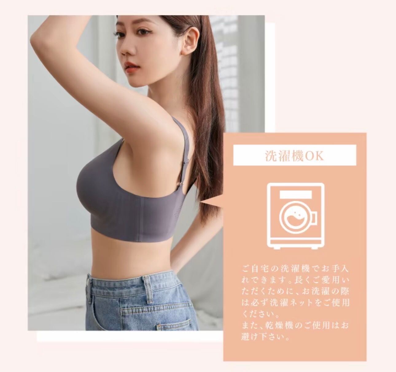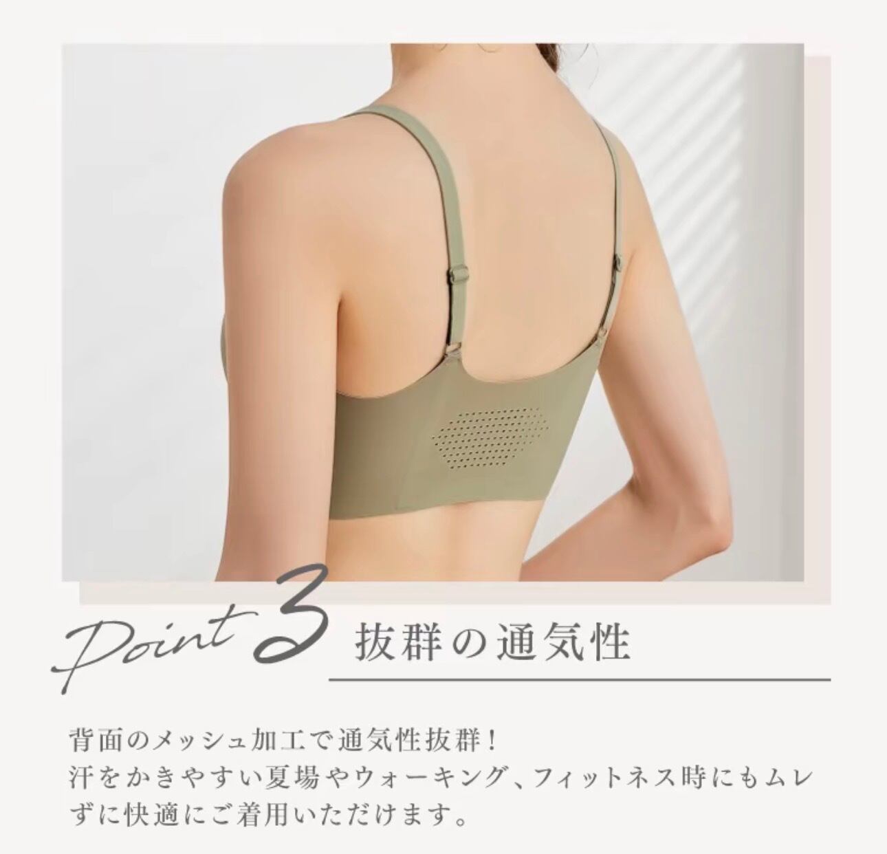 このストラップシームレスブラは、楽天市場ブラジャージャンルで最高評価を獲得した実績を誇ります。特にストラップの長さ調節が可能なため、あなたの体型に合わせてぴったりフィット。24時間快適に着用できるため、日中のカジュアルなシーンからナイトブラとしての使用まで、幅広いシーンで活躍します。