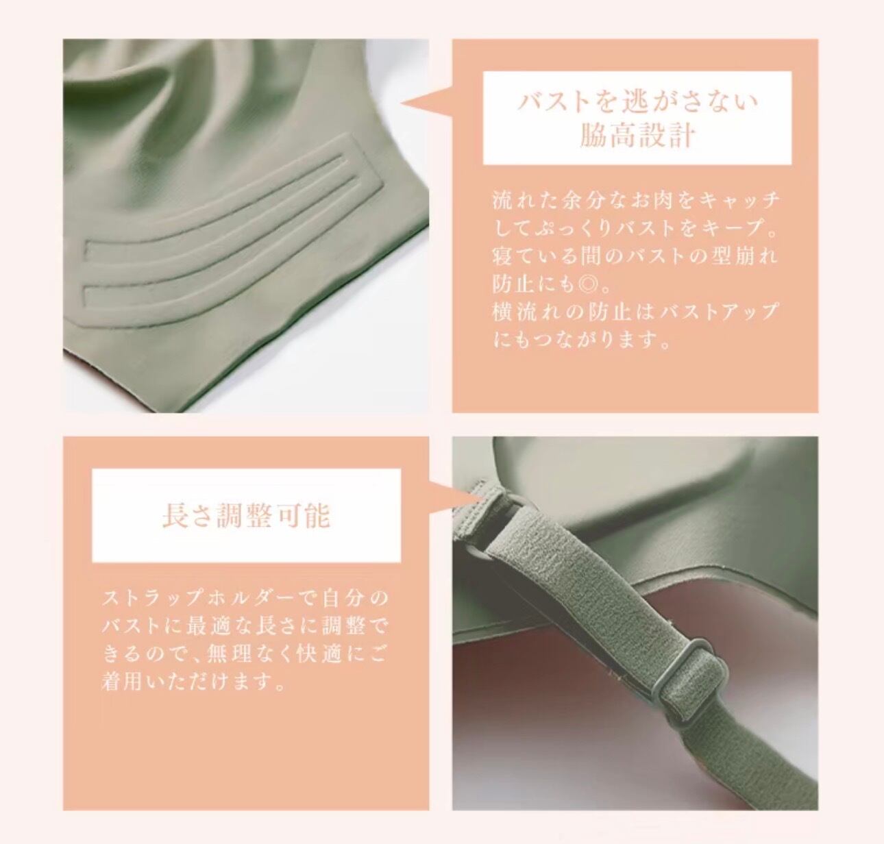 楽天市場ブラジャージャンルレビュー最高評価獲得 24時間使えるナイトブラ ストラップの長さ調節可能