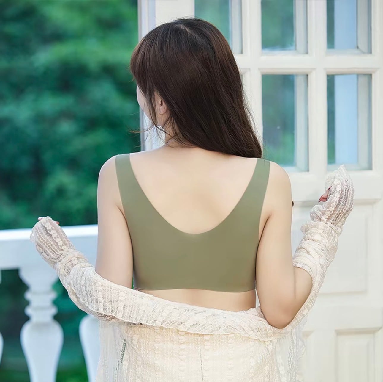 デリケートなレースのディテールが施されたシームレスなデザインは、優雅でありながらも、どんなアウターにも合わせやすいのが魅力。特別な日のおしゃれにも、普段使いにも対応でき、コーディネートに華を添える万能アイテムです。